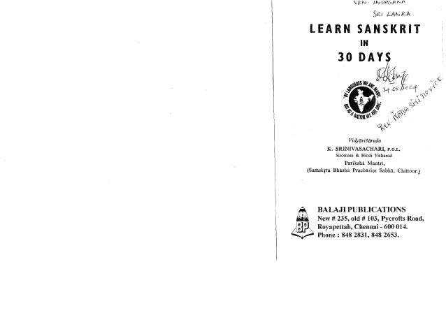 Learn Sanskrit In 30 Days Sanskrit Through English Samskrutham